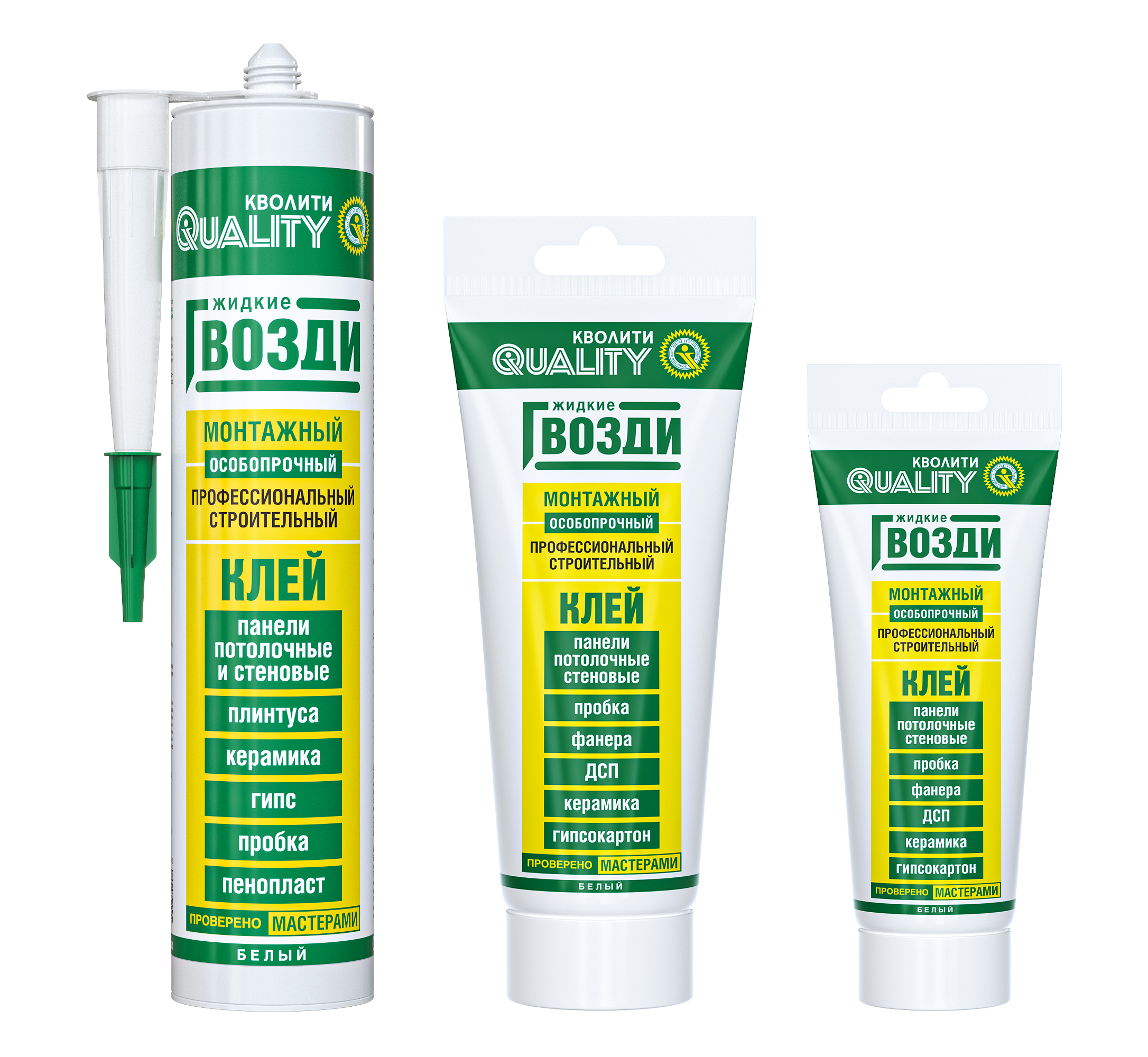 Жидкие гвозди Quality - профессиональный строительный клей - современная альтернатива привычным металлическим гвоздям, шурупам и дюбелям.
