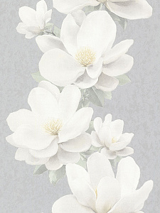 Визуальная доминанта – крупный флористический принт на фоне реалистичной имитации шероховатой штукатурки.