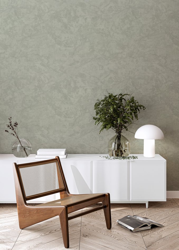 Дизайн обоев напоминает жатую ткань крэш, где застывшие тисненые складки смотрятся как многослойная композиция. Бархатистые тени ложатся на фактуру с имитацией натурального шелка или велюра, добавляя глубину и благородную небрежность.