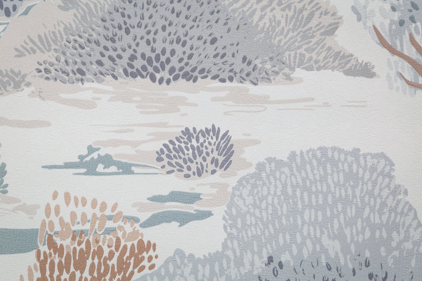 Фон обладает фактурой натуральной замши, которая сейчас в тренде дизайна. Матовая визуально и мягкая на ощупь, она окутывает интерьер домашним уютом. А благодаря подгону «0» полотна клеятся ровно и без стыков, создавая единый панорамный эффект.