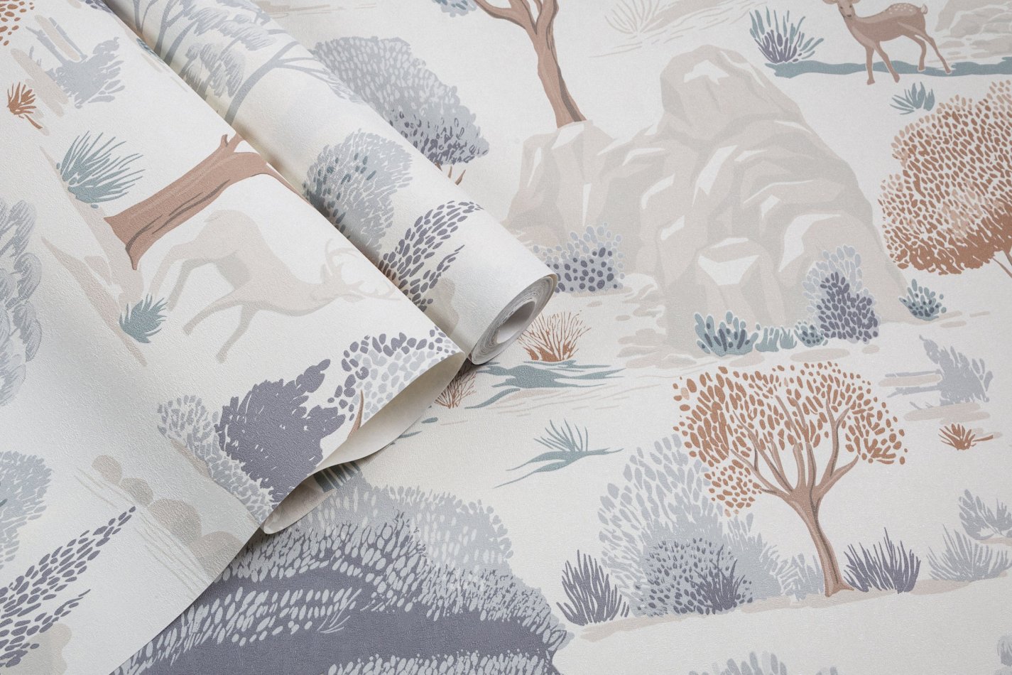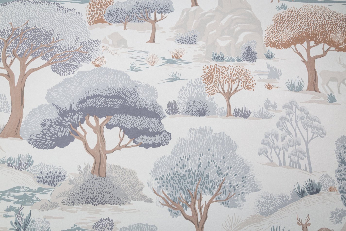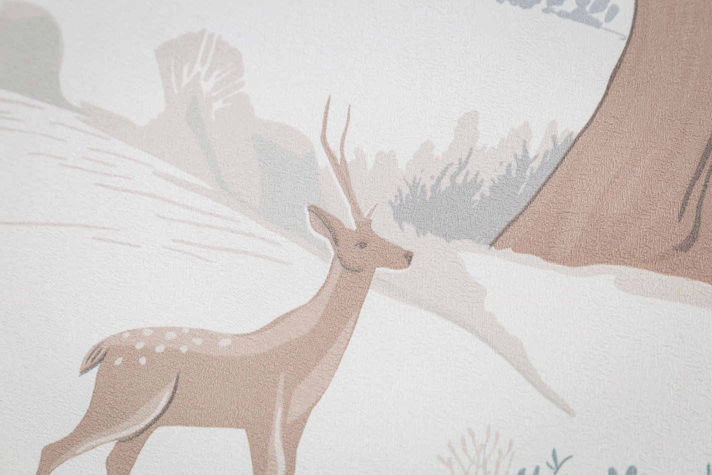 Сюжет наполнен уютной атмосферой сказочного леса – стройные деревья, скалистые холмы и изящные силуэты оленей смотрятся как иллюстрации из детских книжек. Словно созданный рукой художника-декоратора рисунок наполняет комнату природным спокойствием.