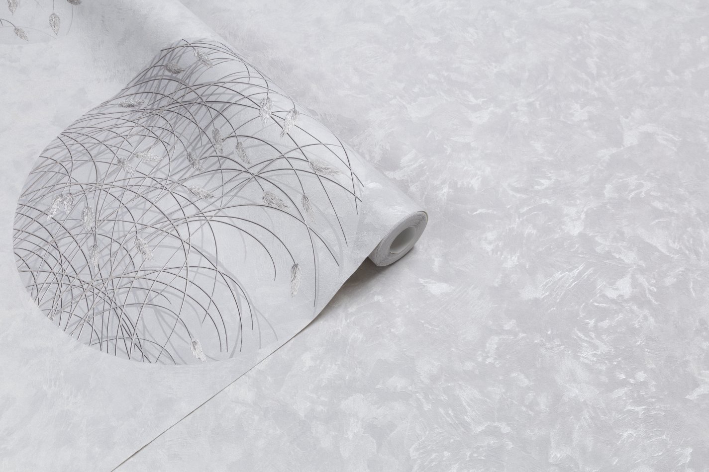 Изящные соцветия и стебли покрыты сияющим металлизированным декором с эффектом фольгирования. Эти глубокие блестящие акценты мягко отражают свет и переливаются словно утреннее солнце скользит по стенам.