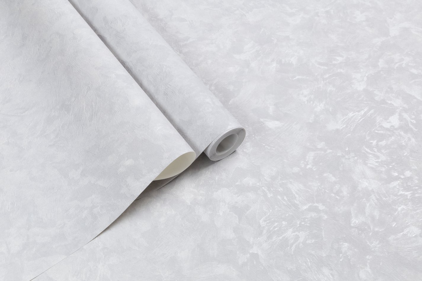 Фактура обоев напоминает декоративную штукатурку марморино с лёгкой зернистостью и чуть шероховатой текстурой. Её мягкий перламутровый отлив красиво раскрывается при разном освещении, придавая поверхности деликатное сияние.