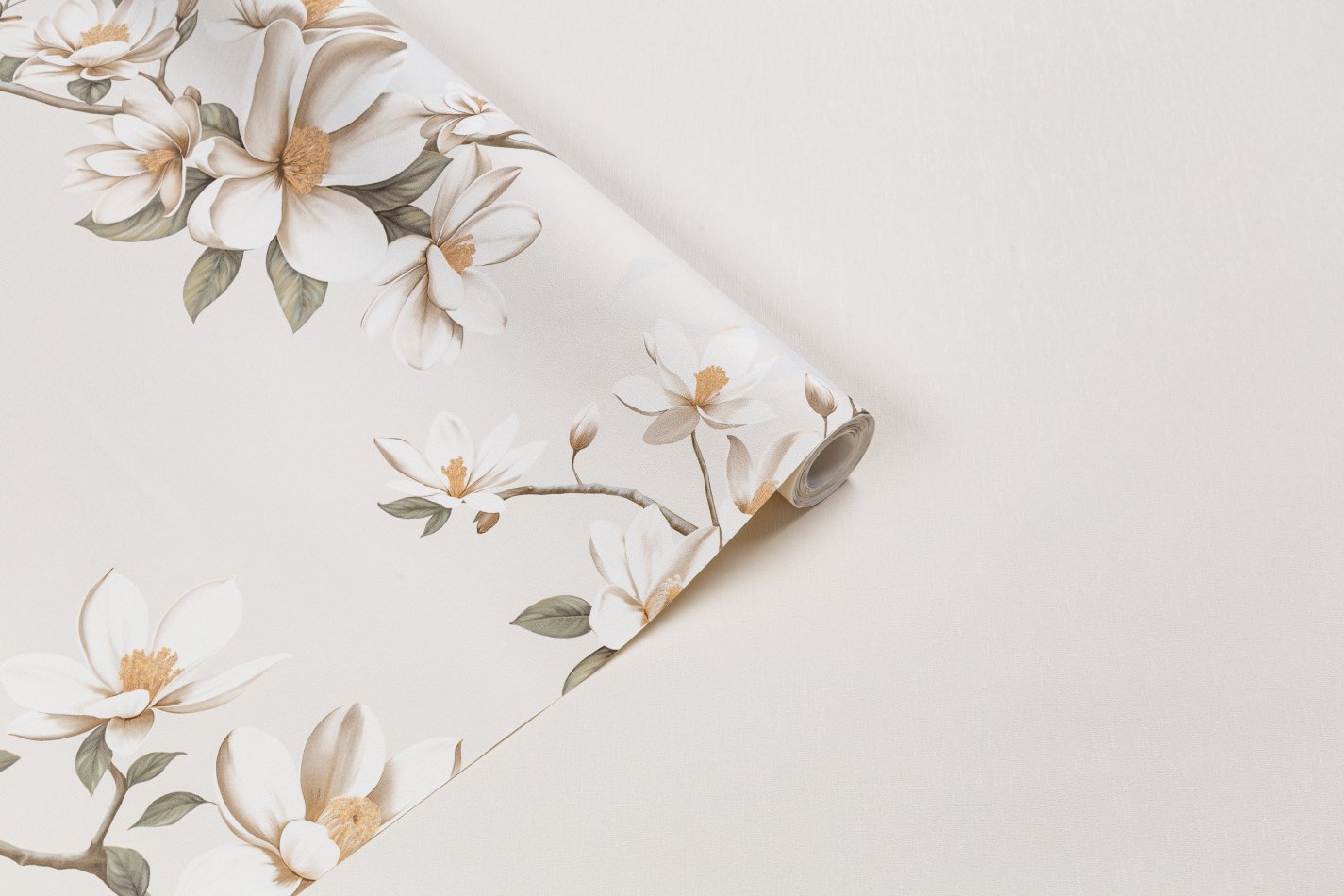 Авантажную тему обоев Magnolia составляют изящные соцветия магнолии и веселое щебетание порхающих в воздухе птиц – весенний мотив, который наполнен светлой радостью от пробуждения природы.