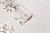 Точечные вкрапления драгоценного декора создают мягкое сияние на тычинках цветков. Металлизированный блеск смотрится словно сверкающие капельки утренней росы. Они переливаются при свете и делают композицию живой.