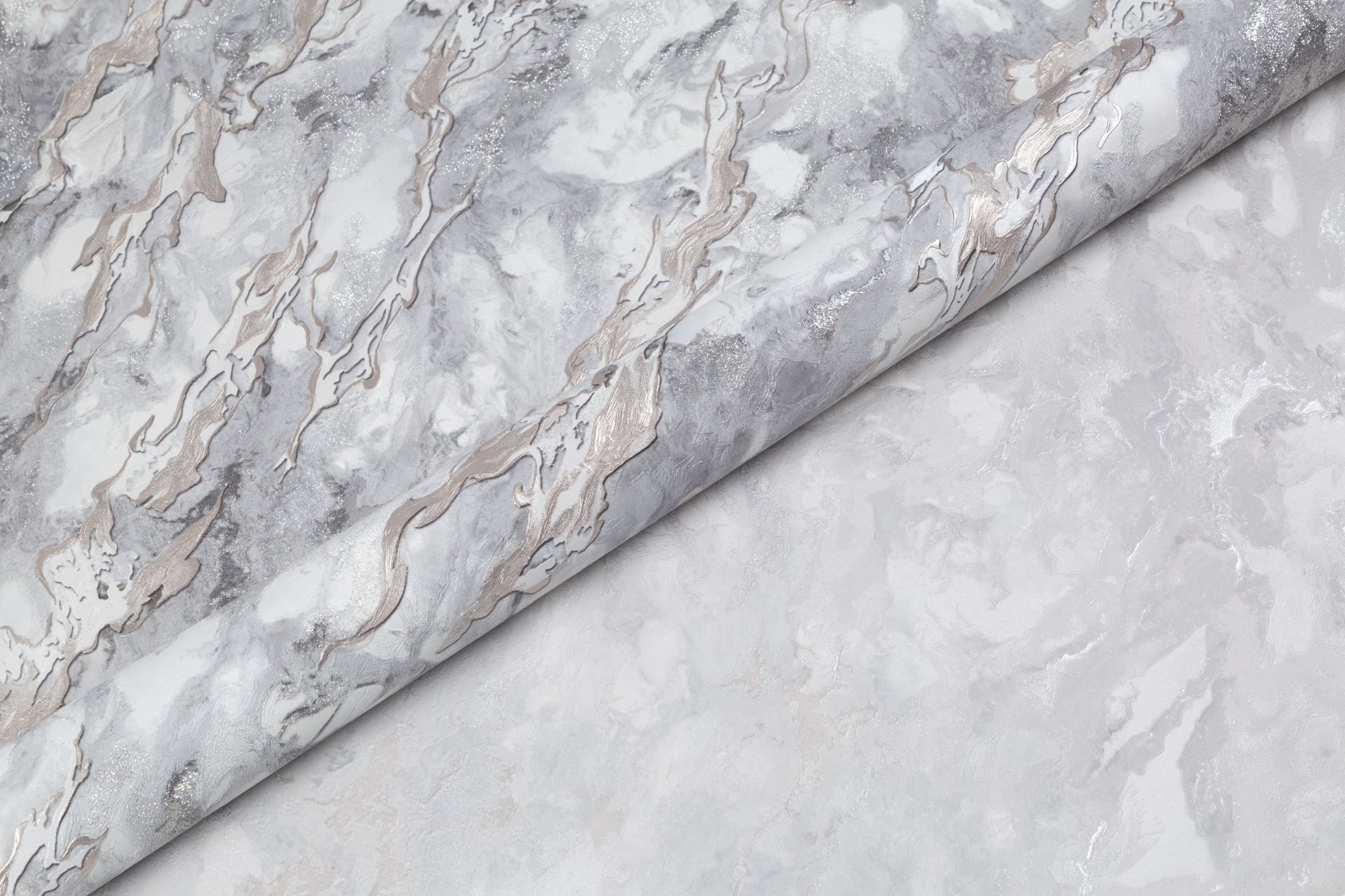 Дизайн обоев максимально реалистично повторяет текстуру мраморного среза. Его узор из многослойных блестящих прожилок и плавных линий – словно уникальный рисунок, созданный природой.