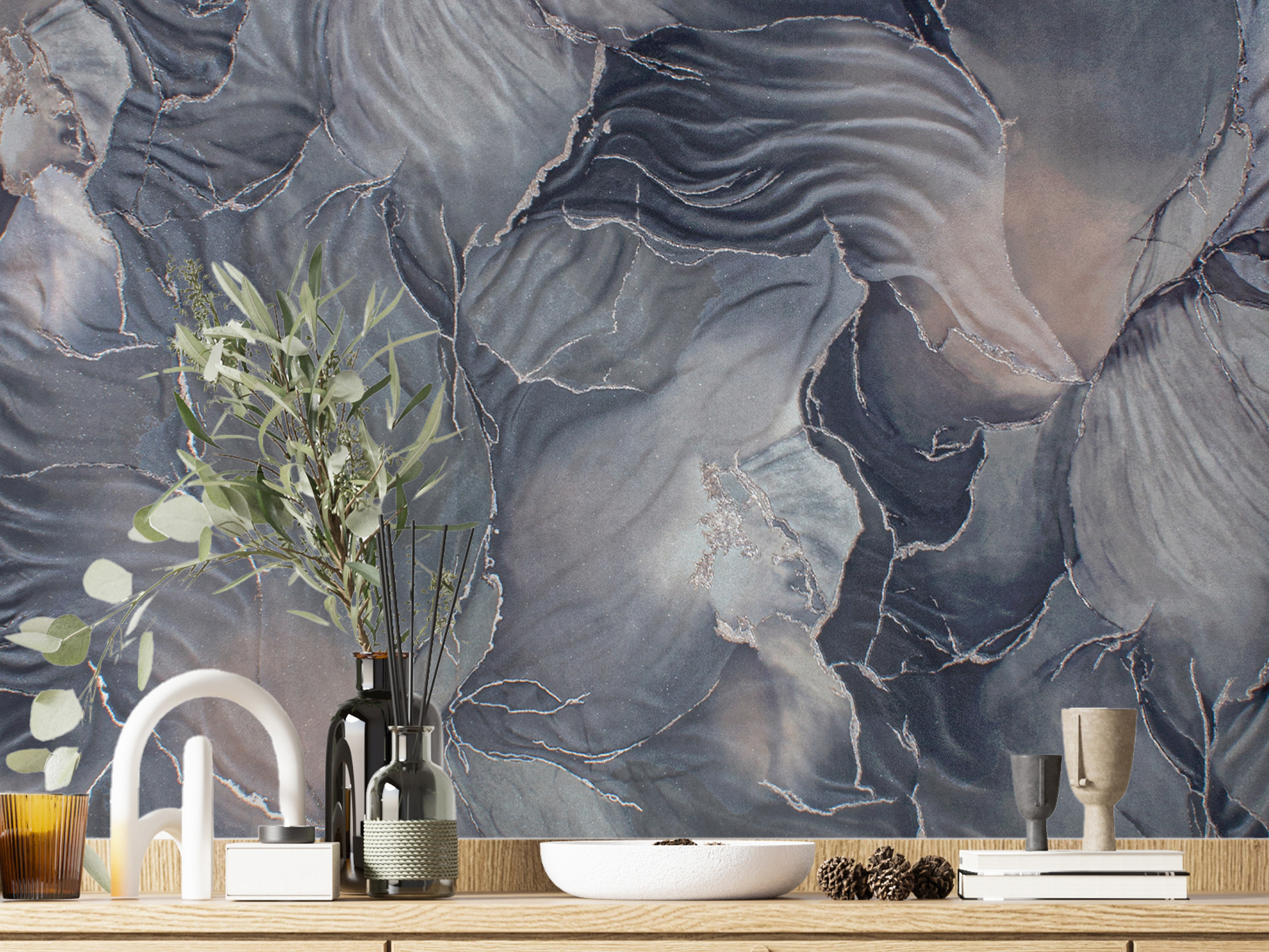 Картинка словно оживает перед нашими глазами, а под разными углами и при разном освещении смотрится абсолютно по-разному. Фон заслуживает отдельного внимания, перед нами настоящий матовый шелк с его дорогой фактурой, подобная декоративная штукатурка стоит просто баснословных денег.