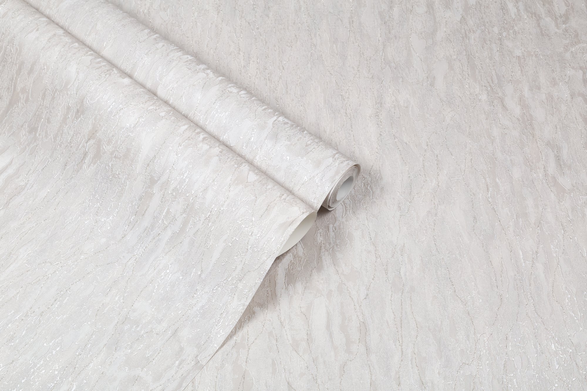 Фон коллекции объединяет мотив и компаньон в единое целое. Он словно струи воды, которые оставляют на стекле блестящие дорожки. Чередование гладких и рельефных элементов и скрытый в их глубине мраморный узор позволяют обоям маскировать неровные стены.