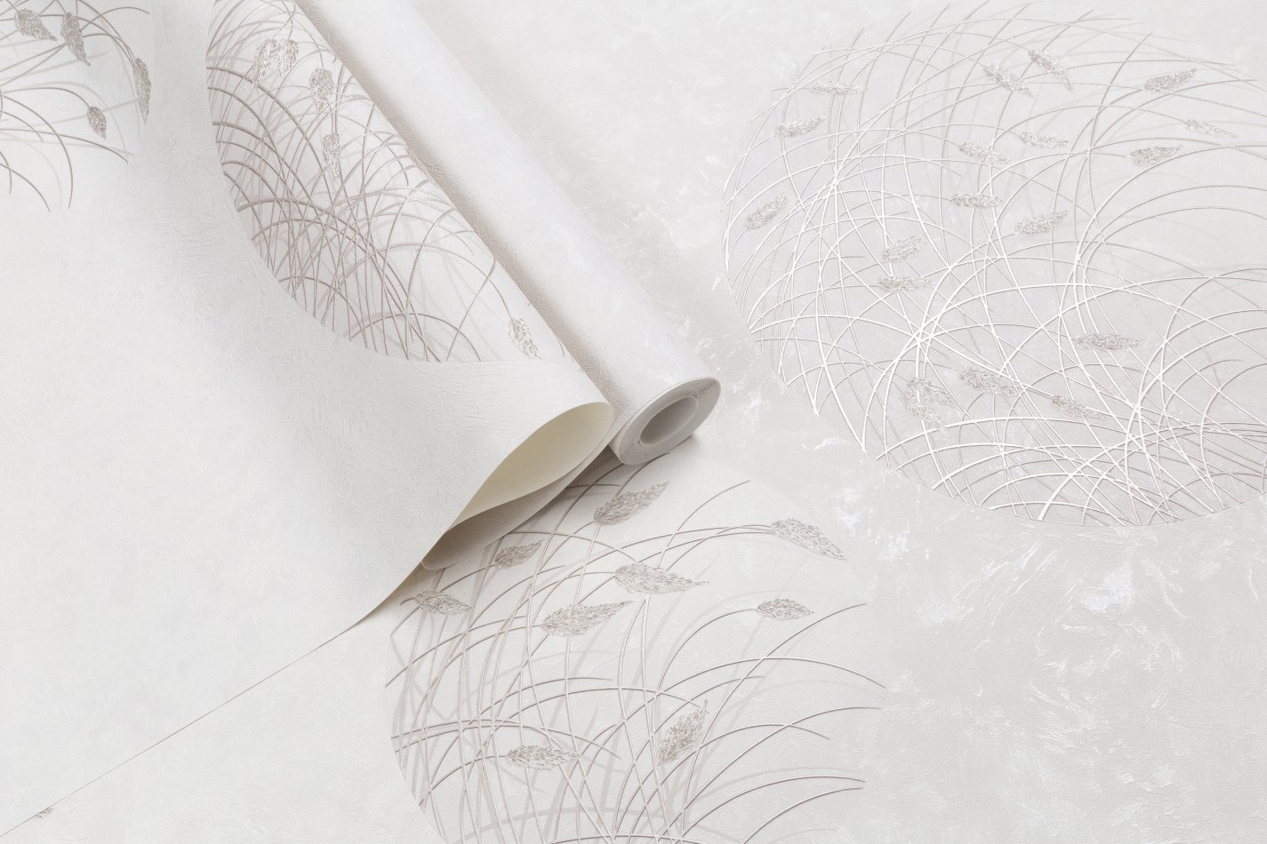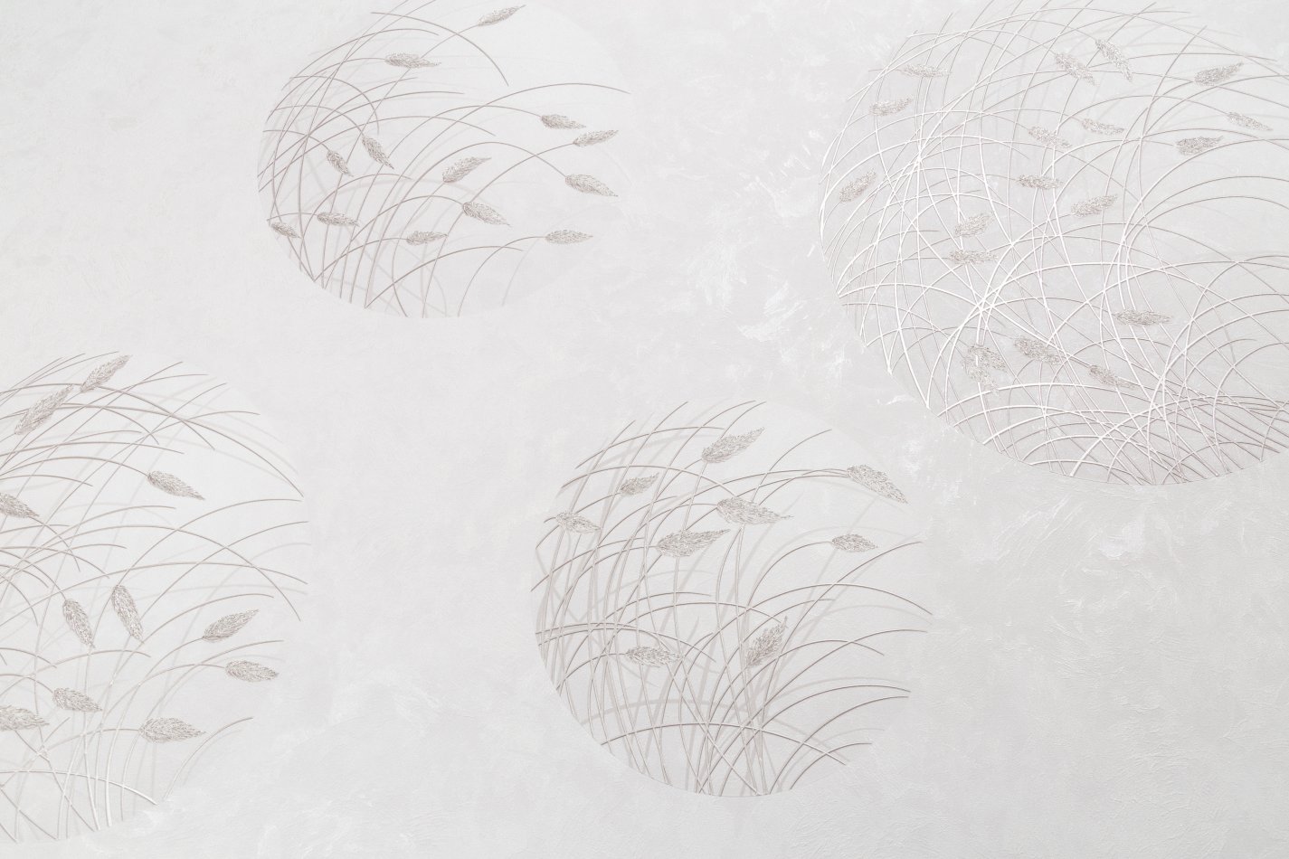Изящные соцветия и стебли покрыты сияющим металлизированным декором с эффектом фольгирования. Эти глубокие блестящие акценты мягко отражают свет и переливаются словно утреннее солнце скользит по стенам.