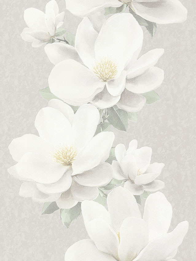 Визуальная доминанта – крупный флористический принт на фоне реалистичной имитации шероховатой штукатурки.