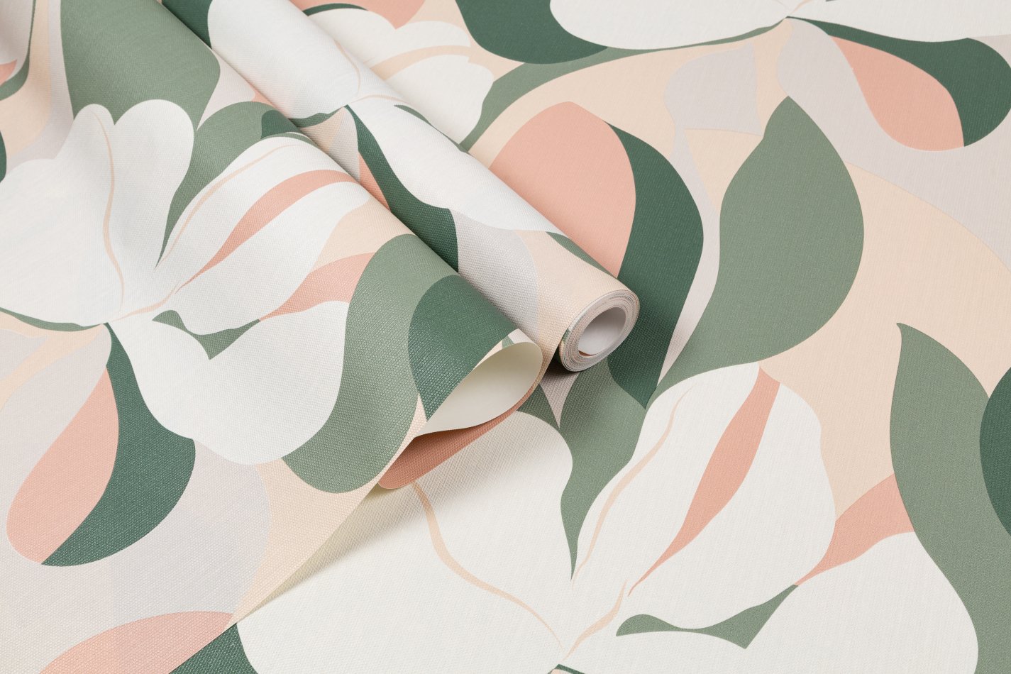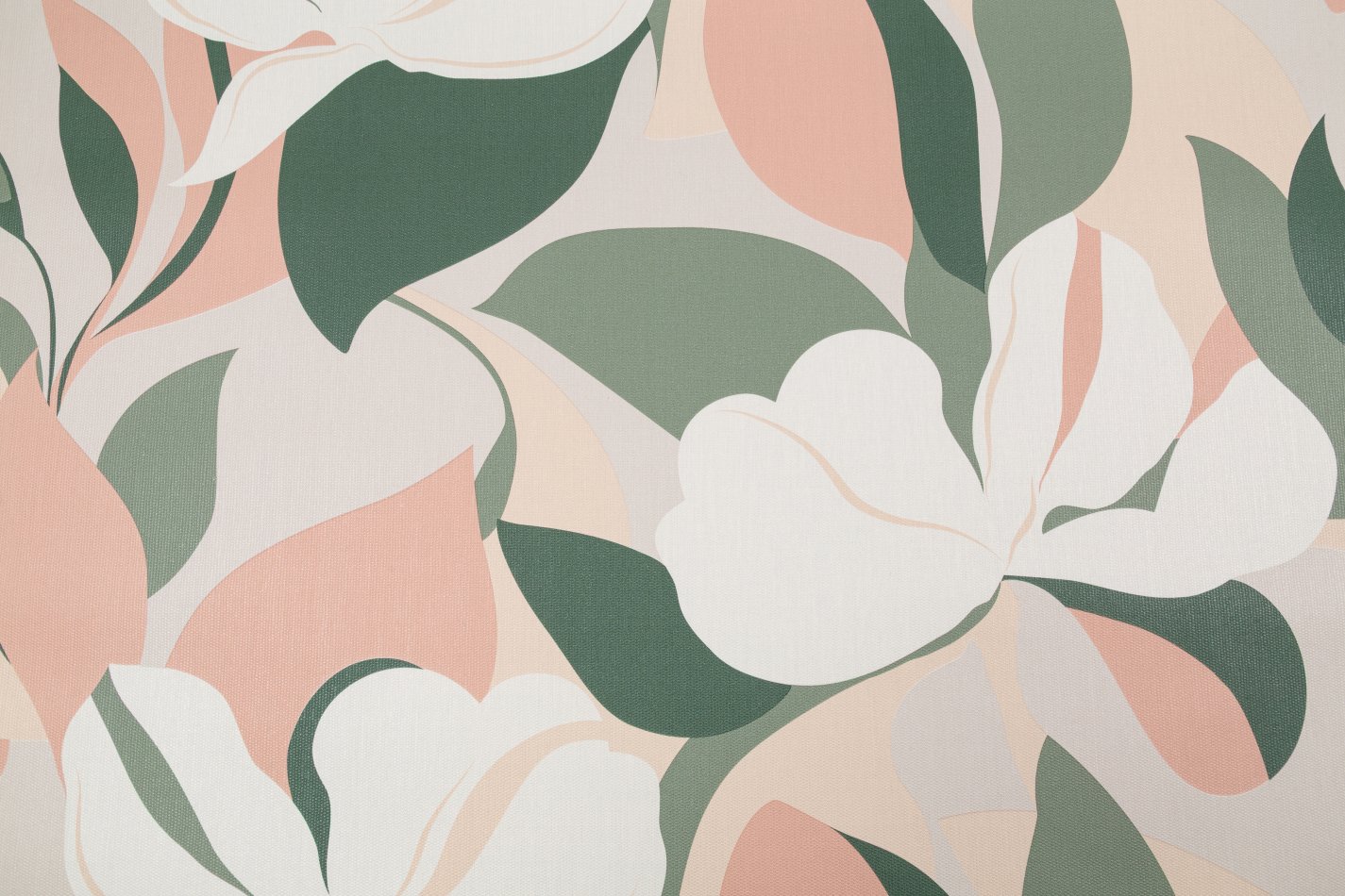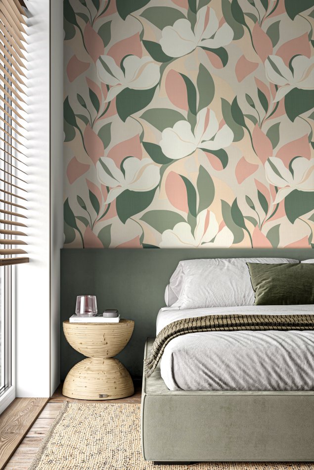 Рисунок коллекции выполнен в абстрактном стиле, где плавные линии и формы складываются в изящные стебель с цветами. Устремленных вверх, к солнцу, листья визуально вытягивают пространство и увеличивают интерьер.