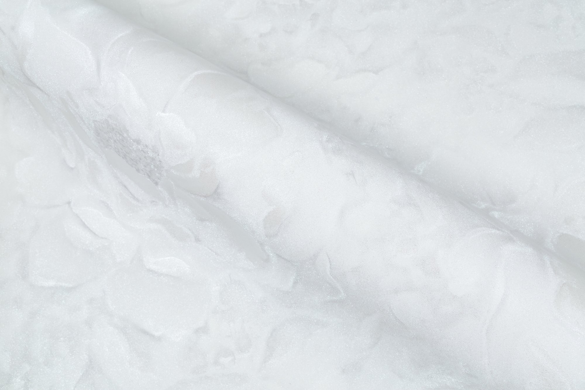 Мотив и фон объединяет фактура шелка с мягкими жемчужными переливами. Здесь каждая шелковая нить, словно тонкая паутинка пронизана магией блеска, придавая поверхности неповторимую глубину и объем.
