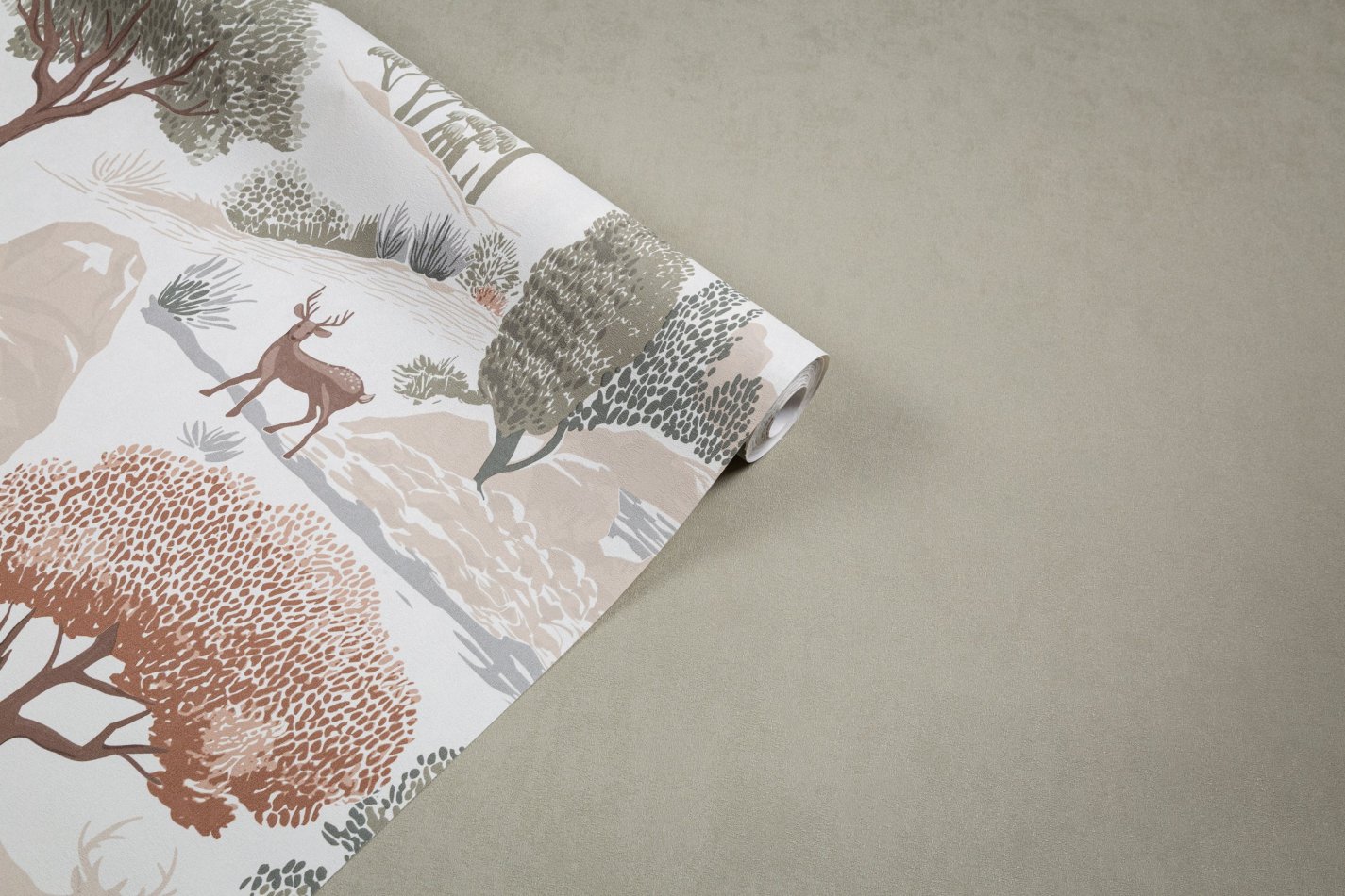 Сюжет наполнен уютной атмосферой сказочного леса – стройные деревья, скалистые холмы и изящные силуэты оленей смотрятся как иллюстрации из детских книжек. Словно созданный рукой художника-декоратора рисунок наполняет комнату природным спокойствием.