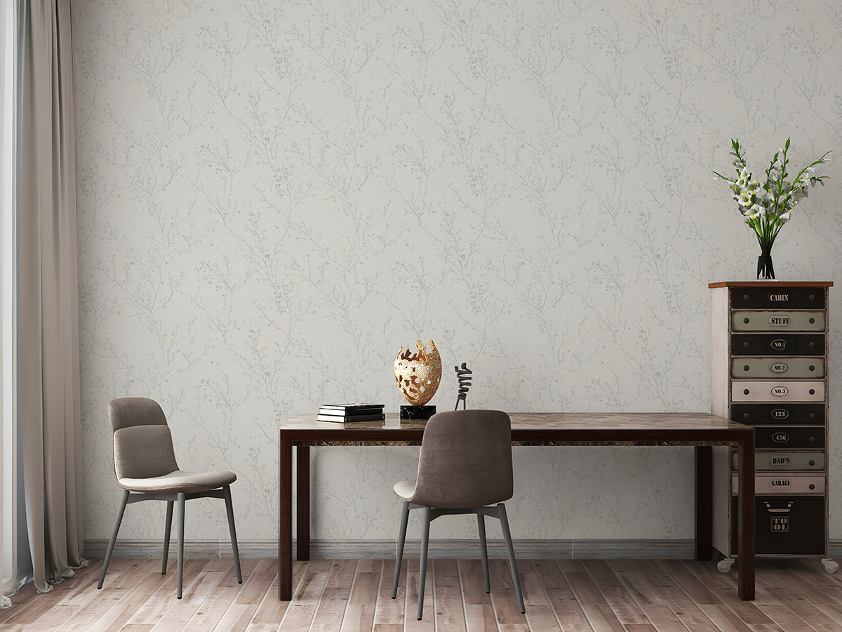 По абсолютно матовой поверхности коллекции «Виола» струятся изящные ветви с небольшими цветками. Деликатный рисунок напоминает объёмную ручную вышивку на благородной ткани. Интерферентные краски с перламутровым отливом подчёркивают затейливые изгибы, а редкие штрихи глиттера добавляет узору едва уловимое сияние.