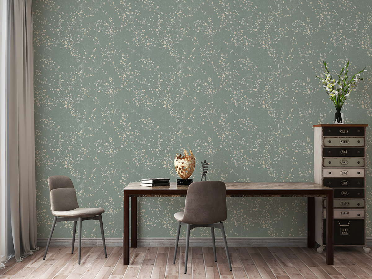 По абсолютно матовой поверхности коллекции «Виола» струятся изящные ветви с небольшими цветками. Деликатный рисунок напоминает объёмную ручную вышивку на благородной ткани. Интерферентные краски с перламутровым отливом подчёркивают затейливые изгибы, а редкие штрихи глиттера добавляет узору едва уловимое сияние.