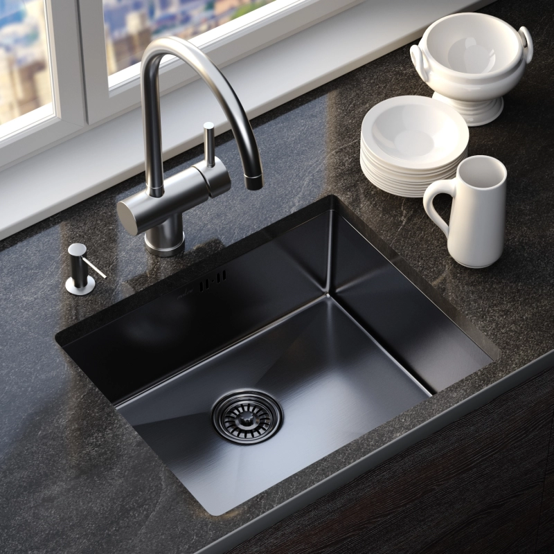 Mixline Мойка ЧЕРНЫЙ ГРАФИТ 53*43*22(3,0) 3 1/2 с сифоном, настольный/подстольный монтаж